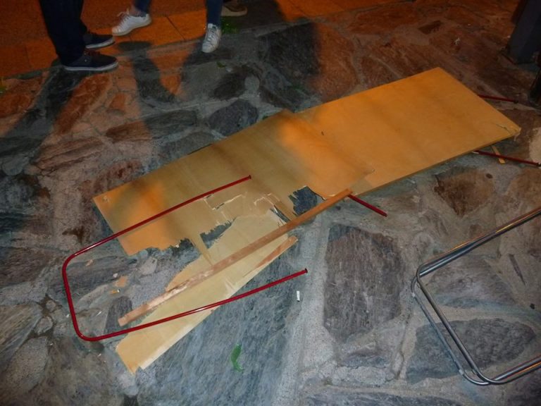 Segons expliquen, un noi els va saltar a sobre de la taula que l’entitat fa servir com a punt d’informació amb fulletons i material divers amb la qual difonen diferents iniciatives, entre elles el seu projecte ‘No i punt respecta’ns la festa de totes’ que pretén combatre l’assetjament sexual que pateixen les dones durant l’oci nocturn.
