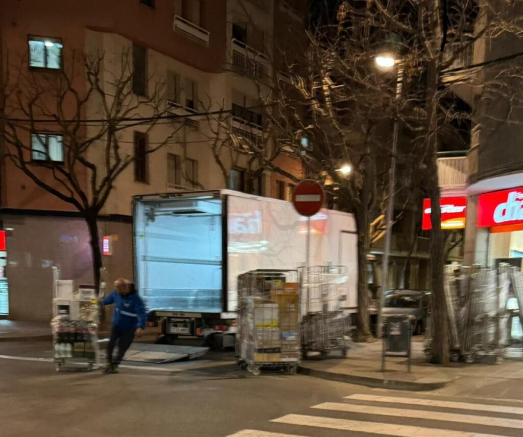 Tot i les reiterades queixes dels veïns des de fa setmanes, continua la inacció de l’ajuntament que no ofereix cap alternativa per evitar el tancament i les dificultats en la circulació per aquest tràiler que du a terme les tasques de càrrega i descàrrega per a un supermercat que es troba al costat.