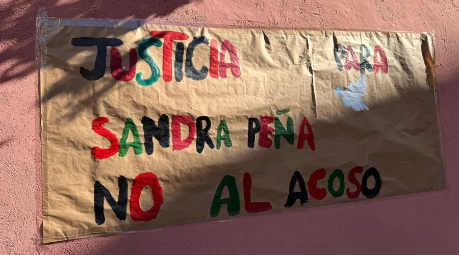 “Justícia per a Sandra Peña. No a l’assetjament”, indica la pancarta en castellà, una frase que va acompanyada del dibuix d’un colom. La iniciativa a la Seu ha coincidit amb la jornada de manifestacions que diversos grups d’estudiants havien convocat arreu d’Espanya -sobretot a Andalusia- amb l’objectiu de condemnar l’assetjament i expressar-hi una ferma oposició. Es pretén, així, cridar l’atenció sobre la “xacra” que afecta des de fa temps molts centres educatius, especialment a secundària.