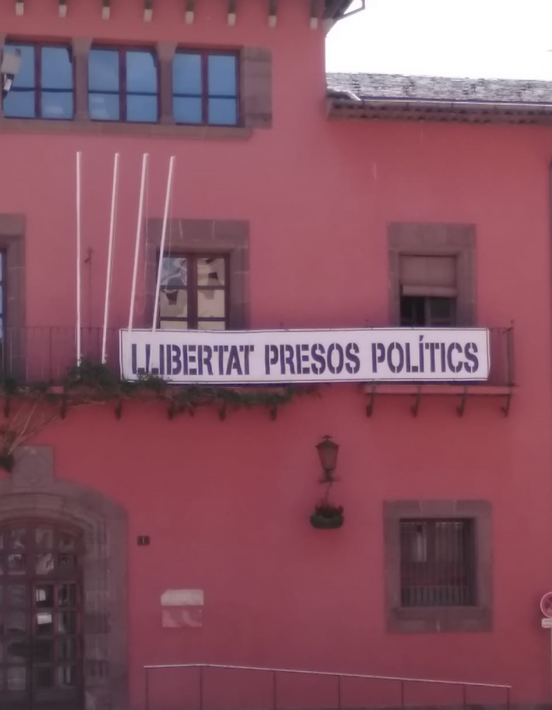 L’alcalde neoconvergent en funcions de la Seu d’Urgell, Albert Batalla, ha col·locat de nou la pancarta en defensa dels ‘presos polítics’ del balcó de l’edifici de l’ajuntament a la plaça Oms. D’aquesta manera, el batlle ha complert rigorosament amb la seva promesa de restituir al municipi, en els terminis previstos, la simbologia independentista una vegada celebrades les eleccions per escollir el seu substitut.