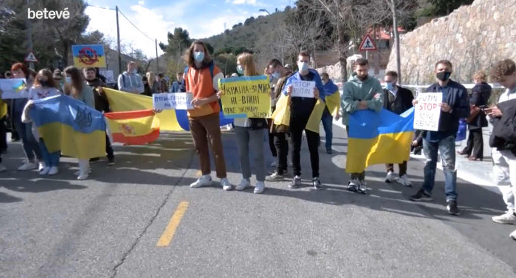 Desenes de persones es concentren des de les 10 del matí d’aquest dijous davant el Consolat de Rússia a Barcelona, situat a l’avinguda de Pearson, després que Vladímir Putin hagi ordenat un atac militar contra Ucraïna. Amb crits de “no a la guerra” i acusant Putin d’”assassí”, la comunitat ucraïnesa es manifesta per mostrar el seu rebuig a l’ofensiva russa.