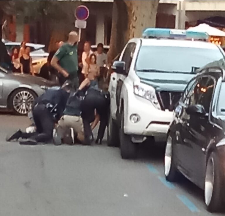 En aquell moment una patrulla de la Guàrdia Civil que circulava per la zona va aturar-se per intentar tranquil·litzar el jove que, lluny de calmar-se, anava augmentant la seva agressivitat inclou empaitant i donant cops a l’agent policial.