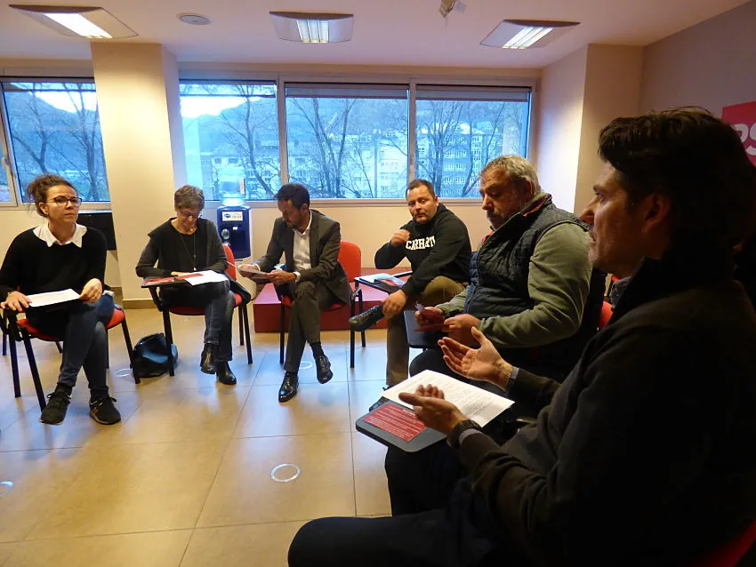 El candidat a cap de Govern del Partit Socialdemòcrata (PS), Pere López, acompanyat de les 2 i 3 de la llista nacional, Susanna Vela i Judith Salazar, han mantingut aquest dijous una reunió amb representants dels sindicats de la funció pública als quals han volgut traslladar les línies claus que la formació té en aquest àmbit de cara a la legislatura vinent, centrades en gran part a revertir les retallades que el col·lectiu ha patit les dues darreres legislatures.