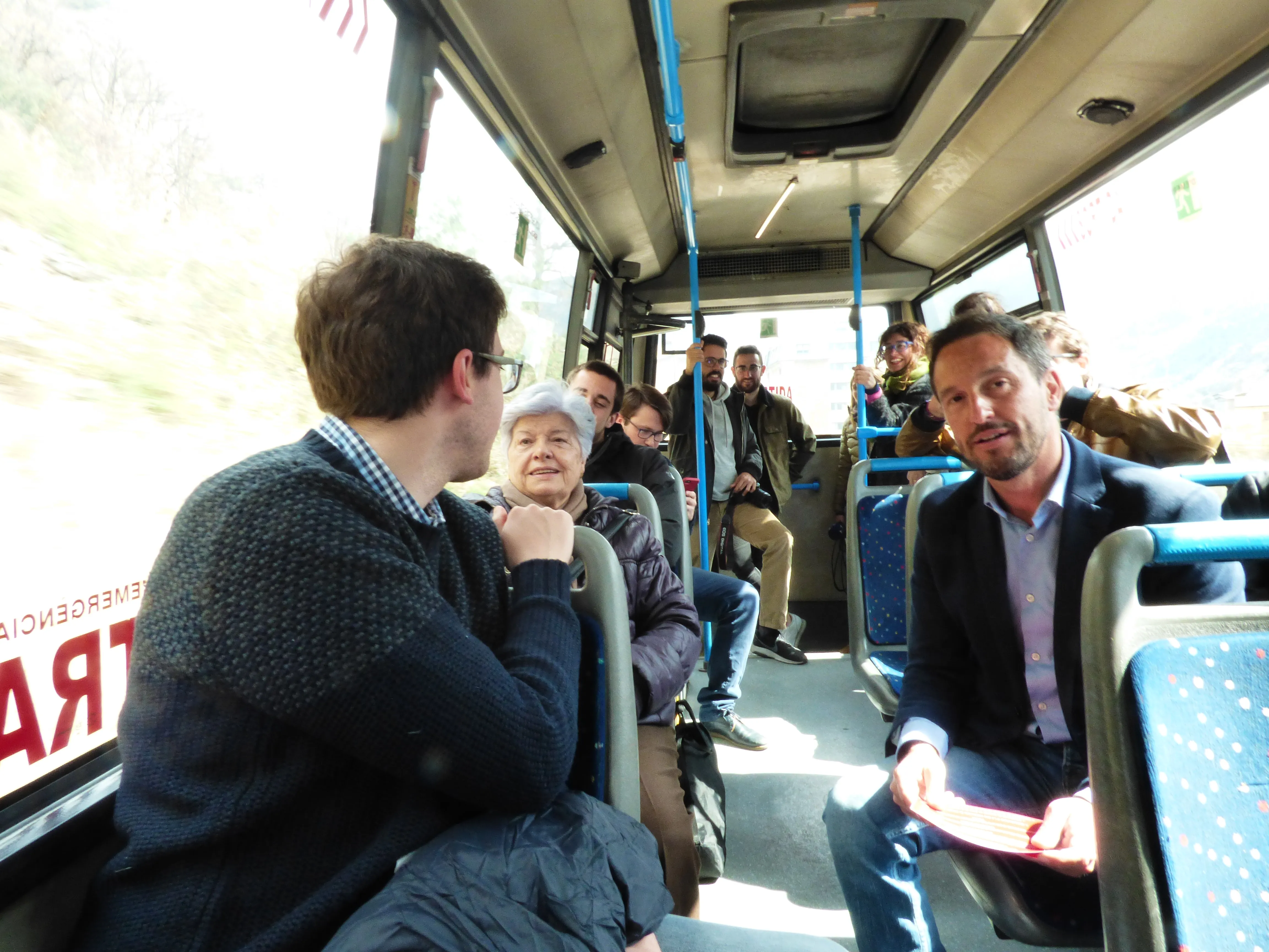 López, acompanyat del número 5 de la llista nacional, Roger Padreny, ha fet aquestes declaracions pujat, justament, a un bus comunal d’Andorra la Vella. Durant el trajecte també ha pogut compartir uns minuts parlant amb passatgers i passatgeres per apropar-los les idees de la formació.