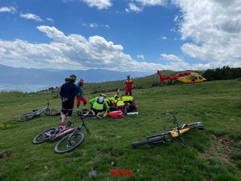 Els bombers han rescatat aquest dimecres una persona ferida per una caiguda amb BTT a Guils de Cerdanya. Els fets han tingut lloc a la muntanya de Guils de Cerdanya sobre leds 13.57 h.