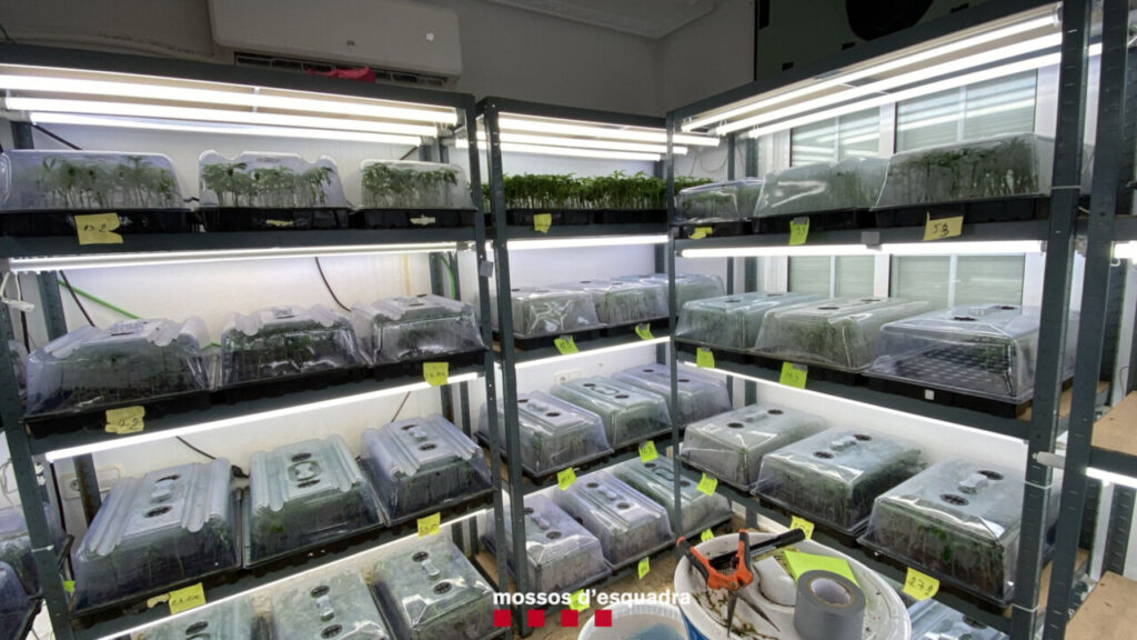 Els investigadors van poder constatar que els membres del grup tenien tasques específiques i ben estructurades dins l’organització i, també, que disposaven d’un laboratori sofisticat on obtenien els esqueixos que transportaven a les zones de cultiu. Aquest dimarts, la policia ha realitzat quatre entrades simultànies a Maials (Segrià), Olivella (Garraf), Vall-llebrera (Noguera) i Tortosa (Baix Ebre), on han detingut quatre persones i intervingut 8.413 plantes de marihuana i un laboratori d’esqueixos.