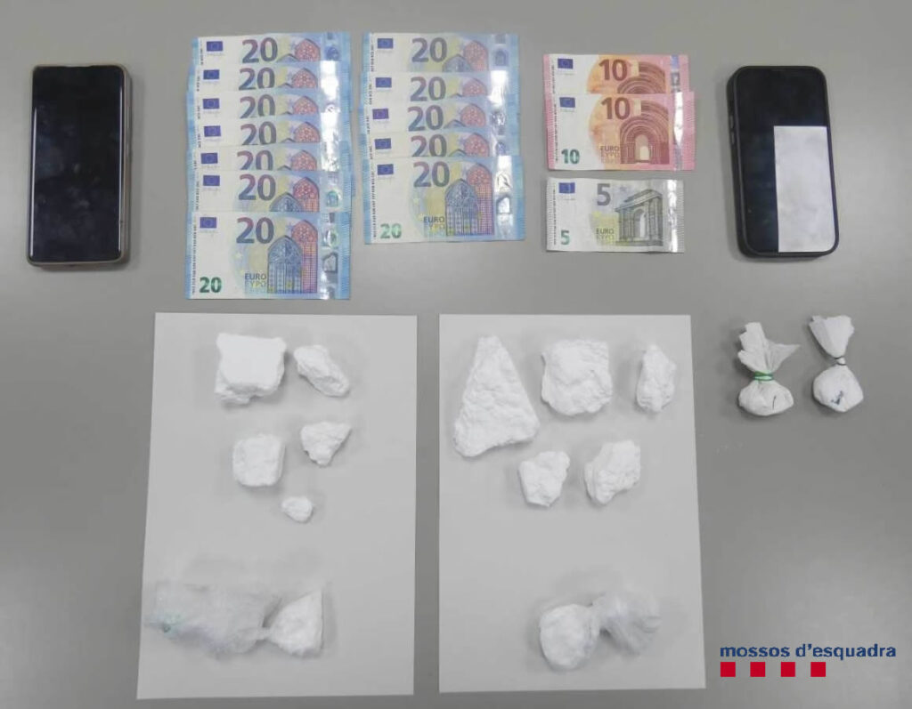 Davant aquesta troballa es va detenir les dues persones com a presumptes autores d’un delicte contra la salut pública. Als detinguts també se’ls va intervenir dos mòbils i 265 euros en metàl·lic.