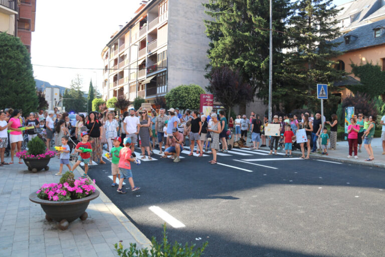 Unes 150 persones, segons els Mossos d’Esquadra, han tallat la carreta a l’altura de l’església. Amb pancartes a favor de garantir l’atenció als infants i en defensa d’una atenció de proximitat, els manifestants també han cridat consignes per l’aposta de més recursos a les zones rurals. A més, l’acció reivindicativa ha adquirit un caràcter festiu amb la proposta de jocs d’aigua, música i berenar.