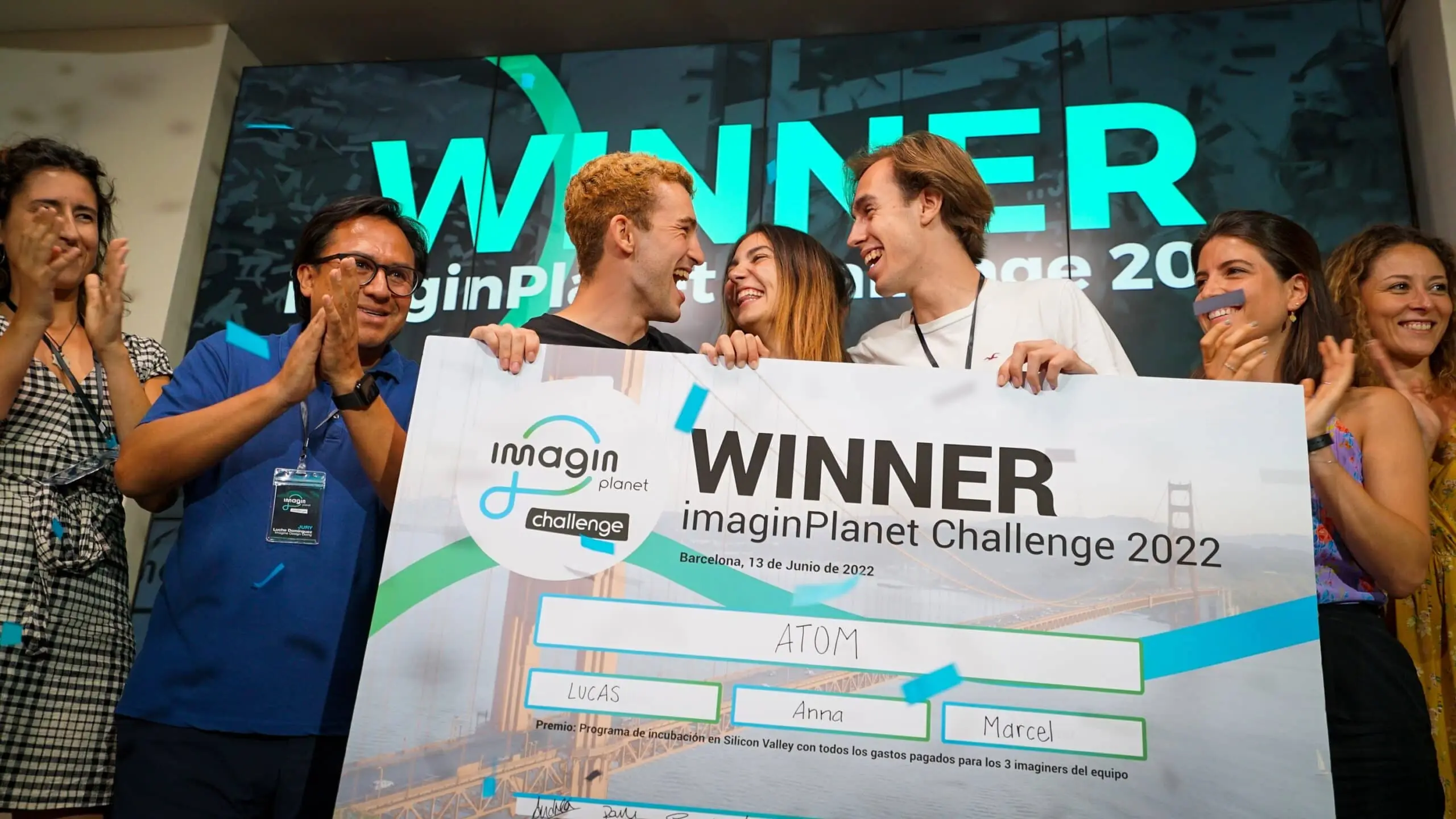 D’entre tots els participants, imagin ha seleccionat 10 equips finalistes, que han presentat els seus projectes davant un jurat d’experts format per professionals vinculats a empreses de referència en sostenibilitat i membres de l’equip d’imagin. La iniciativa ha comptat a més amb la implicació d’un total de 4.800 imaginers, que han votat el seu projecte favorit a través dels canals digitals. Finalment, el jurat professional i els usuaris de l’app d’imagin van triar com a idea guanyadora d’aquesta segona edició de l’imaginPlanet Challenge a Atom, el projecte ideat per tres estudiants d’enginyeria de Barcelona: Lucas Vicen (19 anys), Anna Martin (20 anys) i Marcel Rovira (20 anys).