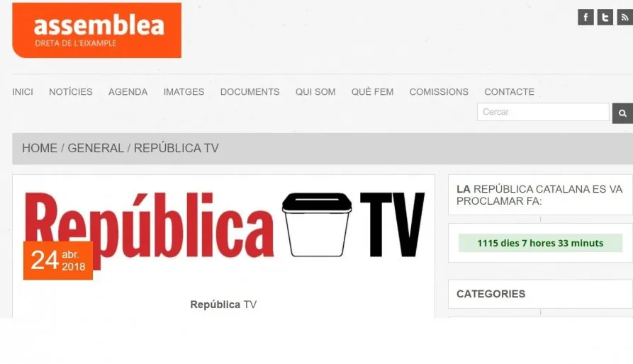 El Departament de Presidència de la Generalitat ha subvencionat amb 27.000 euros l’associació República TV, responsable d’unes emissions televisives que es van inaugurar el 23 d’abril del 2018 amb el suport de l’Assemblea Nacional Catalana (ANC). Diverses delegacions de l’ANC van animar a seguir aquesta oferta per Internet que es va presentar com “la televisió de tots aquells catalans que l’1 d’octubre varen defensar les urnes en el referèndum d’autodeterminació de Catalunya”.
