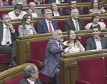 Després de la reunió convocada per Torrent, s’ha reprès el ple. Torra ha col·locat al seu costat el llaç que havia retirat Carrizosa.