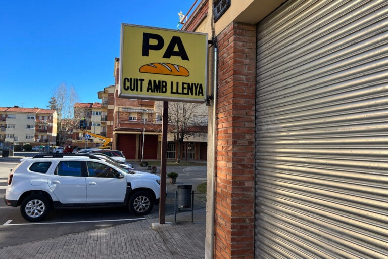 El cartell de “Pa cuit amb llenya” és l’última pista que queda del darrer establiment obert a Sant Pere de Ripoll. Situat a la part alta de la ciutat, aquest és un barri de classe treballadora, amb blocs de pisos de protecció oficial construïts fa més de 50 anys, entre altres habitatges, i també tres centres educatius i una residència de gent gran que porten centenars de persones cada dia. Entre els veïns, hi ha moltes persones grans, com l’Ana, que es lamenten de la situació. “Hi ha molta gent que no té cotxe, que han de baixar al poble sí o sí, i a vegades els ascensors no van”, es queixa.